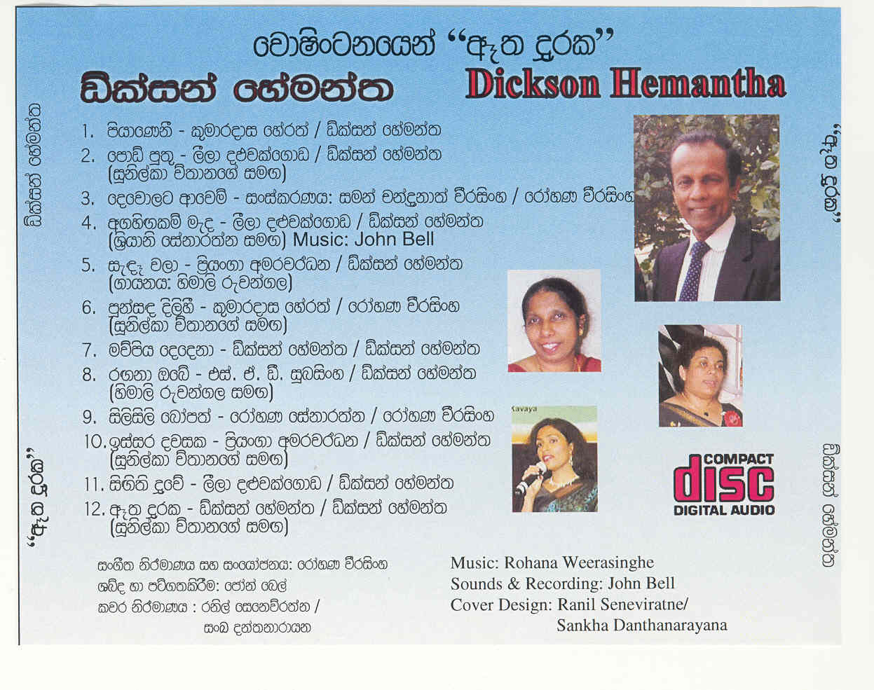 Etha Duraka is the first Album of Dickson Hemantha from Washington DC, USA.