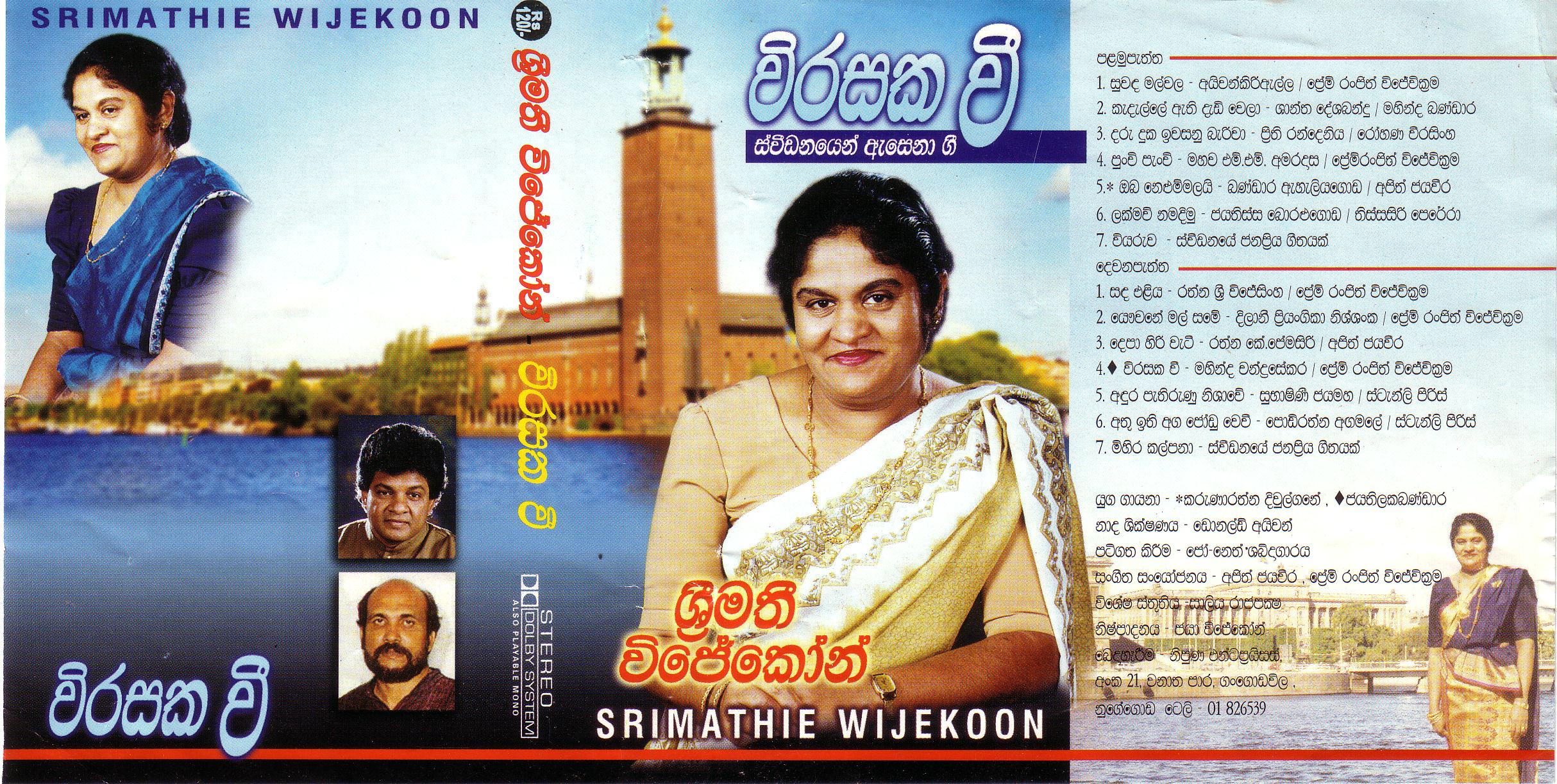 Srimathie Wijekoon was born in Teldeniya, near Kandy. She is mother of three and a qualified teacher in profession in Sweden. Ever since childhood, she has been very fond of music. Being an old girl of Mahamaya Balika Vidyalaya, Kandy, she has, from a young age, participated at almost every concert and other activities at the school. Three of her own songs were recorded at the Rajarata Sevaya in 1998. A year later Srimathie released her first album, "Virasaka Vii" in order to raise funds to a start a boys' section at an orphanage at Polonnaruwa. Today, 22 orphaned boys under the age of 12 live there. She started the only Sinhala radio broadcast in Scandinavia, "Sri Lanka Jayahanda" in 1999, and thousands of listeners world-wide are enjoying this radio service by www.srilankaradio.org.se now.