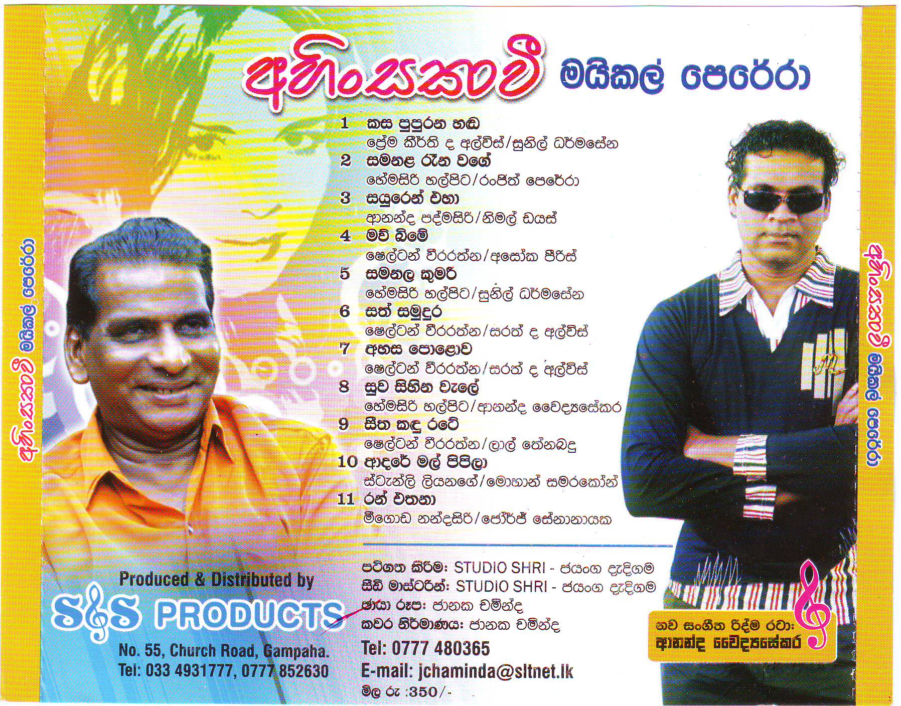 Ahinsakaawi compact disc containing 11 songs of Michael Perera is produced by S and S Products of 55 Church Road, Gampaha, Sri Lanka. We thank S & S products for their generosity in allowing us to feature this CD as a free download for our fans around the world. New music for all 11 songs are by Ananda Waidyasekera. Recording and CD Mastering is by Jayanga Dedigama. Photos and CD cover design is by Janaka Chaminda.