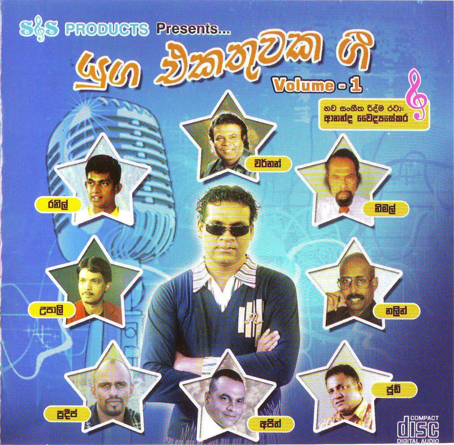 Yuga Ekathuwaka Gee volume 01 compact disc containing 16 songs by several leading vocalists including Vernon Perera, Ranil Mallawarachhci, Ananda Waidyasekera, Nalin Jayawardena, and Nimal Gunasekera is produced by S and S Products of 55 Church Road, Gampaha, Sri Lanka. We thank S & S products for their generosity in allowing us to feature this CD as a free download for our fans around the world. New music for all 16 songs are by Ananda Waidyasekera. Recording and CD Mastering is by Jayanga Dedigama. Photos and CD cover design is by Janaka Chaminda.