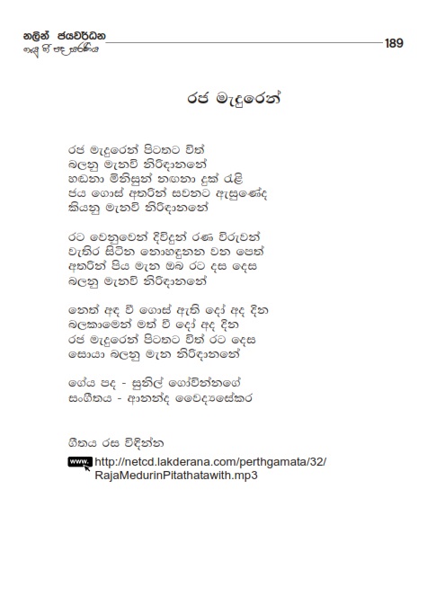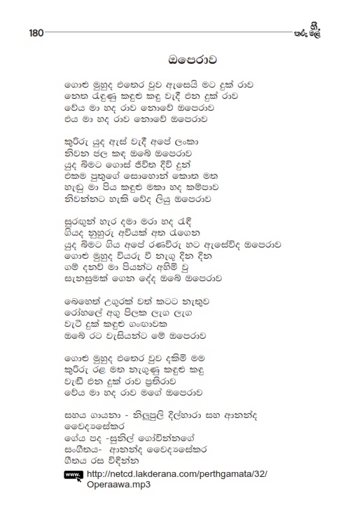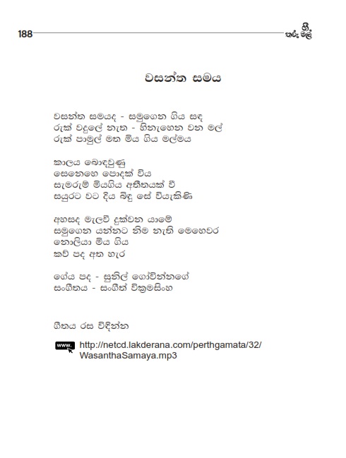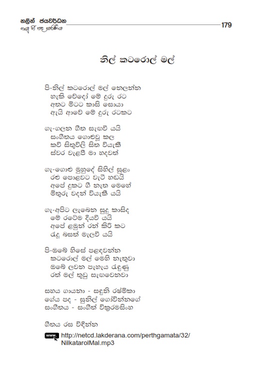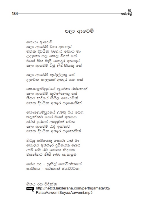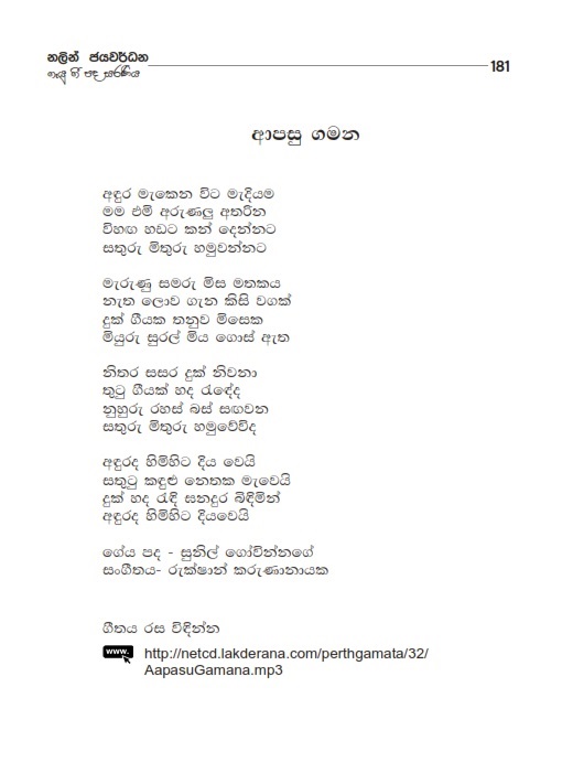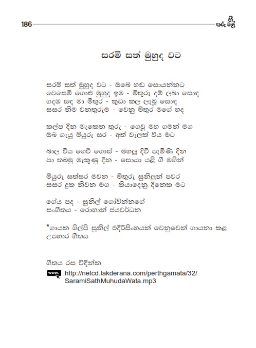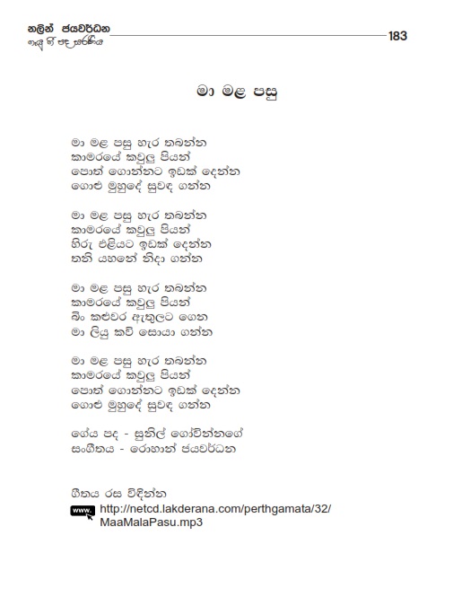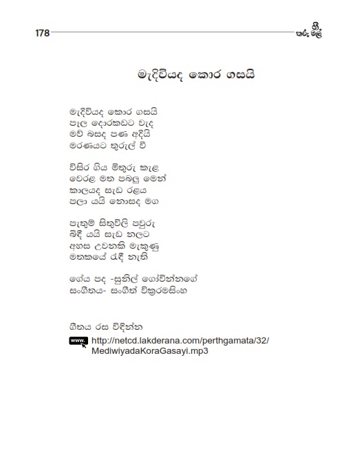 Perth Gamata Paayayi Sandha is the debut compact disc containing 14 songs written by Sunil Govinnage. The CD is produced in Australia where Sunil is residing now. All songs in the album are voiced by Nalin Jayawardena with duets by Sanduni Rashmika, Nilupuli Dilhara, and Ananda Waidyasekera. The music compositions for the albums are by Rohan Jayawardena, Ananda Waidyasekera, Sangeeth Wickramasinghe, and Rukshan Karunanayake. CD mastering is by Studio 2J of Australia and recording are by Jayanga Dedigama and Sangeeth Wickramasinghe. Cover design of the CD is by Janaka Chaminda. The CD contains a tribute song to Sunil Edirisinghe, a veteran classical vocalist of Sri Lanka.