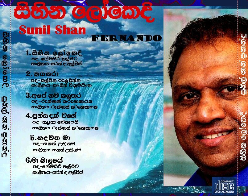 Sunil Shan Fernando, born in Kalutara, but raised in Ja-Ela is a talented vocalist from birth. In 1988, he sang 6 songs penned by Hemasiri Halpita and composed by Sarath De Alwis. Four of those were approved by the SLBC (Sri Lanka Broadcasting Corporation) and aired in the second service (Commercial Service) in the 80s. He sang "Sihina Lokedi" for ITN program "Rasa Dahara" in 1989. He also sang a duet titled "Pinsara Bhumiya" with Dammika Walpola live in the National Television in 2005. In this CD, he presents the listener with 6 songs from the 23-year long collection of his songs. He is now living in Montreal, Canada and looking forward to hear from the listeners. You can reach him via lukesunil "at" gmail.com or via facebook page, "Sunil Shan Fernando."