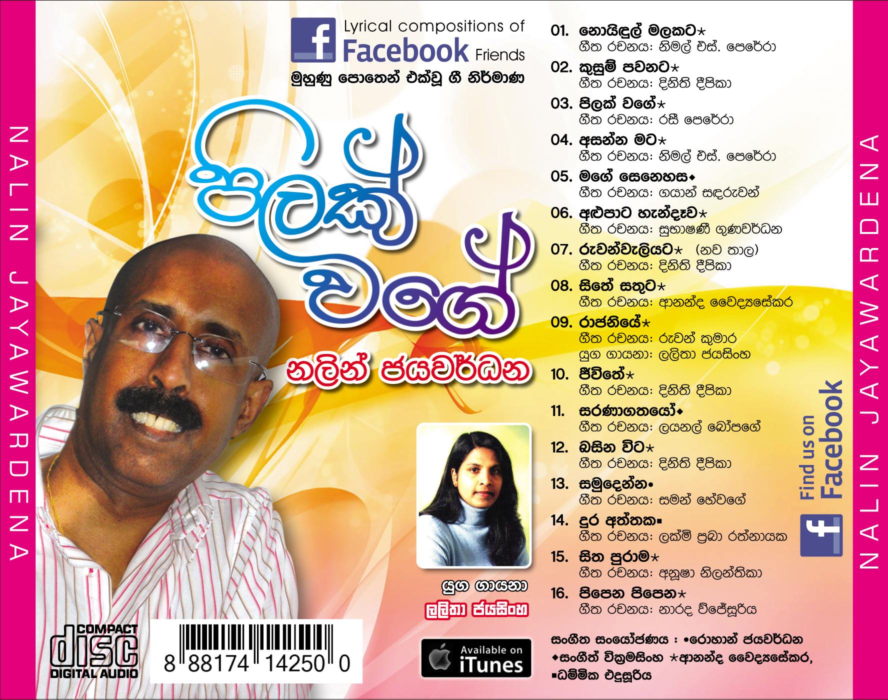 We are featuring 32 song tracks from two albums (Pilak Wage and Pini Wessa Wage) Nalin Jayawardena arranged by Facebook Collaborations with several songwriters. Tunes and Music direction for these songs are by Rohan Jayawardena, Ananda Waidyasekera, Dammika Edussoriya, and Sangeeth Wickramasinghe. Nalin Jayawardena, the Australia based Srilankan, Sinhala singer-songwriter is one of the latest artists to benefit from establishing friendships in the Facebook. He recognised these new hidden talents and have joined with them to produce some original songs to be included in this album. Nalin expects that this opportunity given will provide these poets with an opportunity to fullfil their dreams of becoming a song writer. He wishes this album will give them more exposure and open doors oneday to become great song writers in the Sinhala music world. Majority of the poems were selected from female poets who he feels have difficulty penetrating the male-dominated old boy network of lyrics writers in srilanka. He does not want to forget some talented young male writers as well as rarely heard sinhala poetry veterans. Nalin thanks them all for their generosity and for their well wishes towards him.