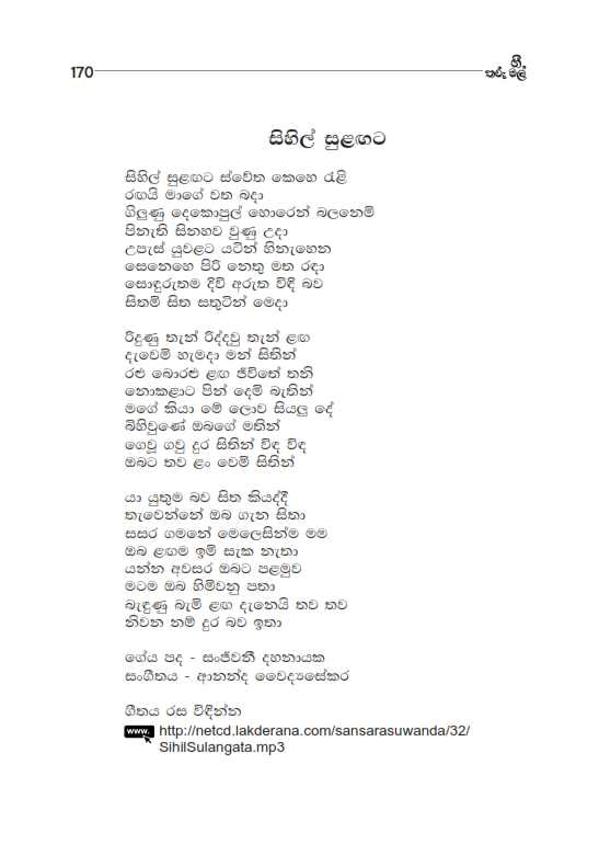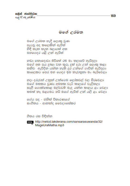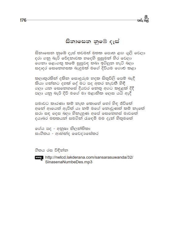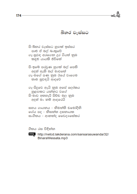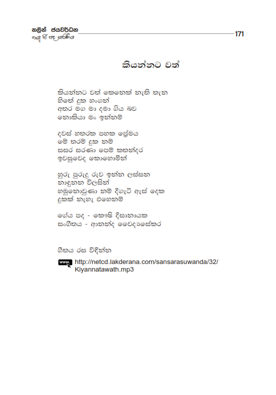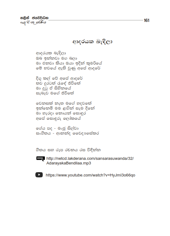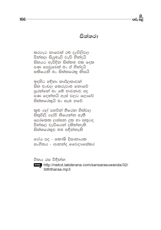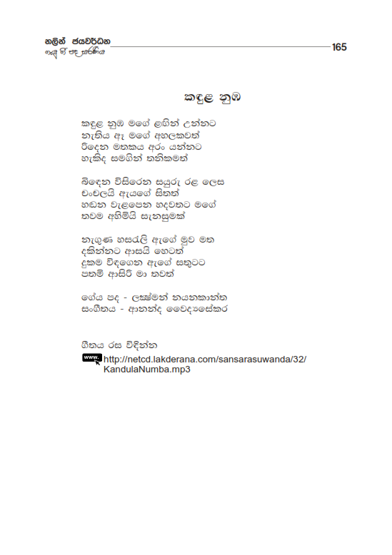 Sansara Suwanda is the newest sinhala song album by Nalin Jayawardena released on March 2015 under the Lanka Heritage Label, Sansara Suwanda contains seventeen (16) songs whose tunes are composed by Ananda Waidyasekera and one (01) song tune composed by Maju Silva. Album contains one (01) duet with talented vocalist Amila Nadeeshani and two (02) duets with the upcoming talented vocalist from Sri Lanka, Nimanthi Chamodini. Lyrical compositions of the album are by Anusha Nilanthika, Eranga C. Palathiratne, Manju Silva, Nayanethiri Kapurusinghe, Lakshman Nanayakantha, Kawshi Disanayake, Tharanga Jeevani, Prof. Anuradha Seneviratne, Janith Vitharanage, Nishantha Dasanayake, and Sanjivani Dahanayake. CD cover is by Janaka Malmuthurama and CD music direction is by Ananda Waidyasekera.