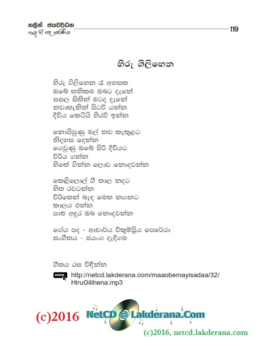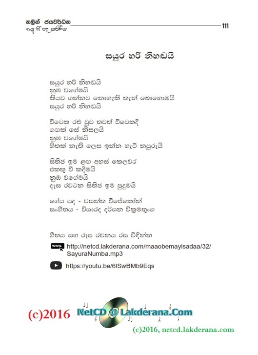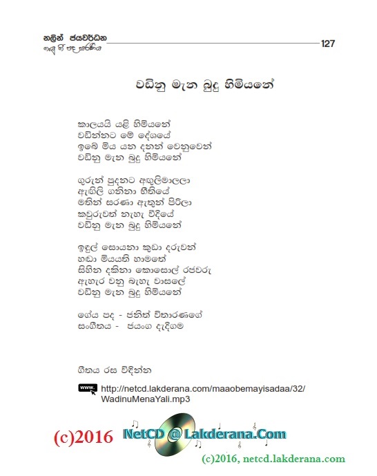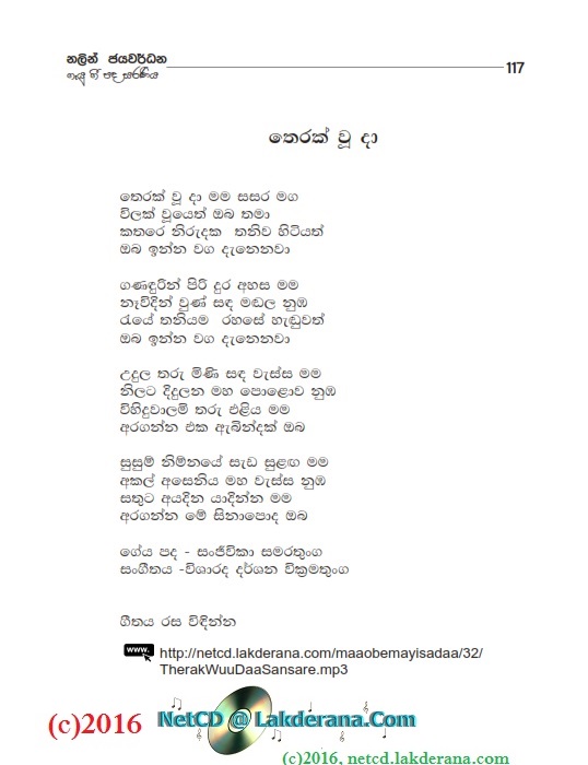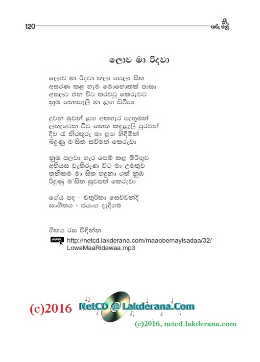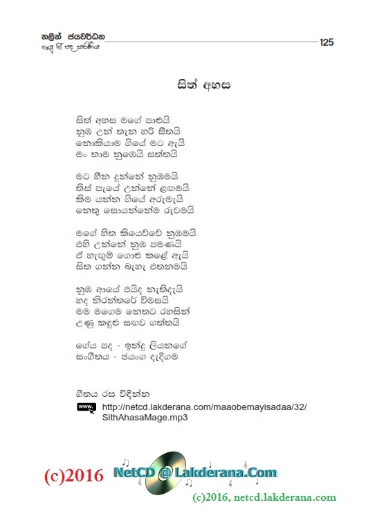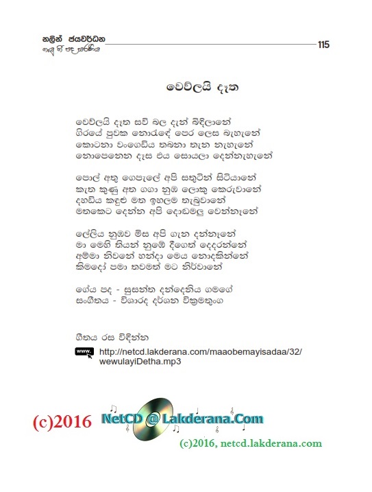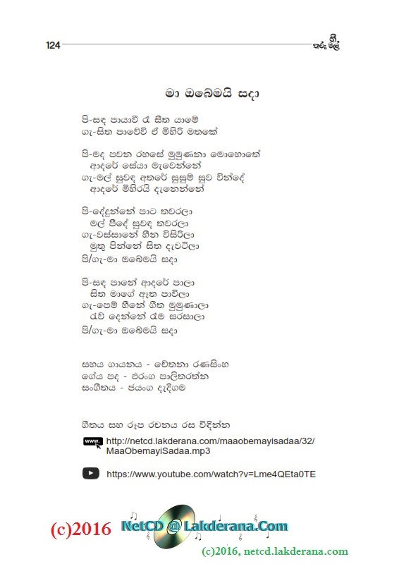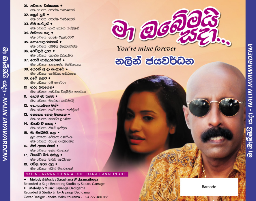 Nalin Jayawardena released on August 2015, his newest album titled "Maa Obemayi Sadaa" under the Lanka Heritage Label. The album features 18 orginal sinhala songs of which 10 songs were music composed and directed by Jayanga Dedigama while the other 08 songs were music composed and directed by Darshana Wickramathunga. The album contains a duet with Chethana Ranasinghe as well. The lyrics writers for the album are Wasantha Wijekoon, Hasini Bhagya Thanthrige, Aruna Wickramarachchi, Susantha Dandeniya Gamage, Dammike Egodawatte, Nayanasena Wanninayake, Sanjeewika Samarathunga, Rasi Perera, Dr. Vicumpriya Perera, Chathurika Sewwandi, Manoji Poornima, Nishad Inthika, Eranga C. Palathiratne, Indu Liyanage, Dilini Abeysinghe, and Janith Witharanage. CD cover is by Janaka Malmuthurama and CD recordings were done at Sage Studio and Studio Sri in Sri Lanka.