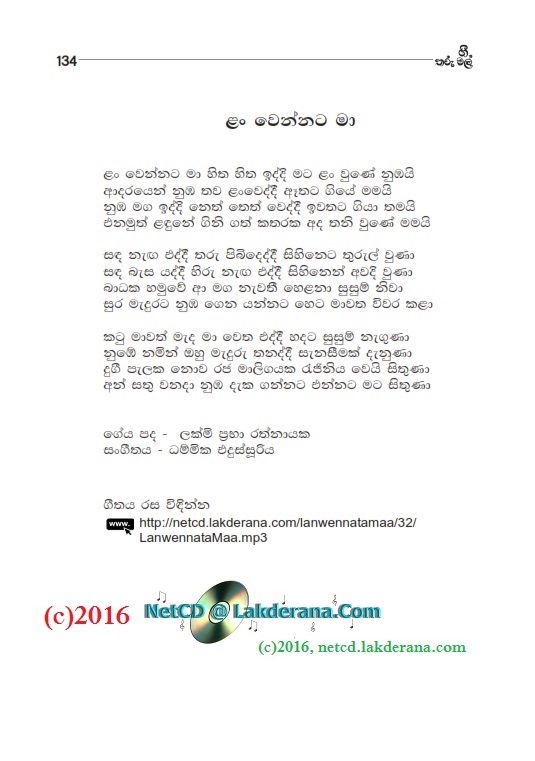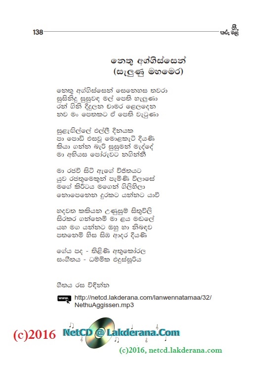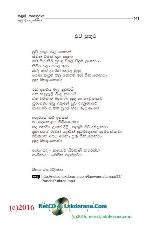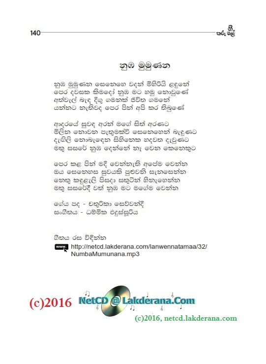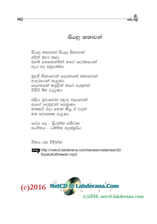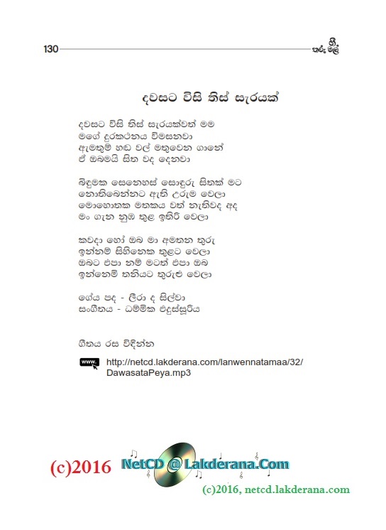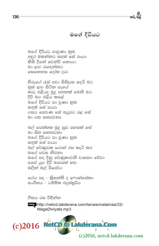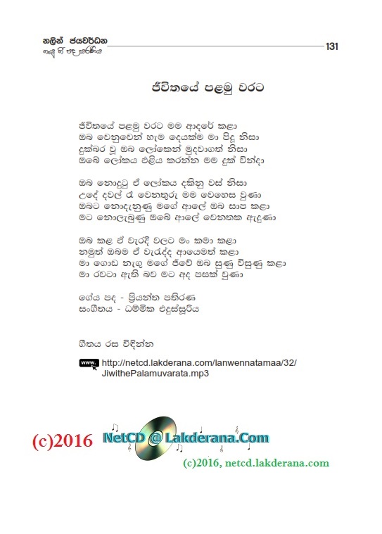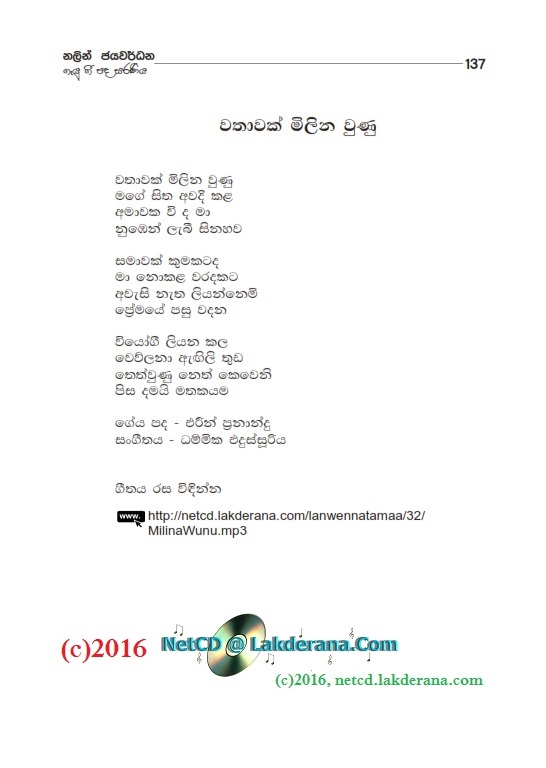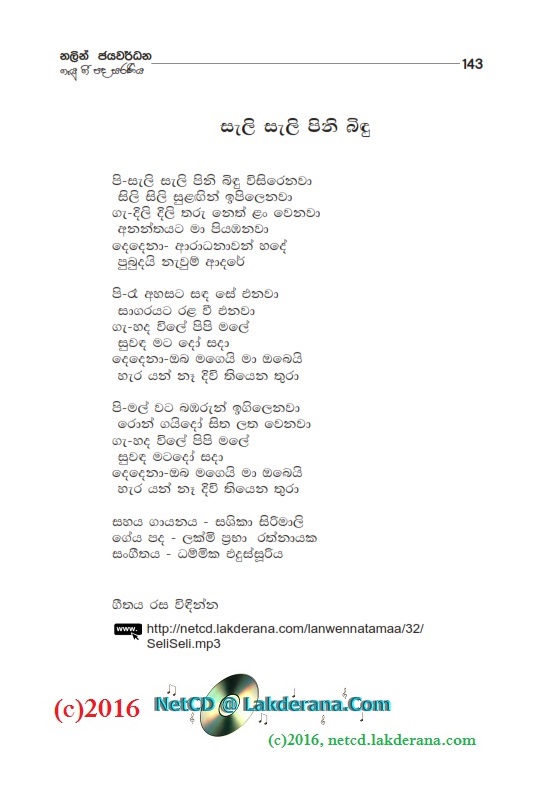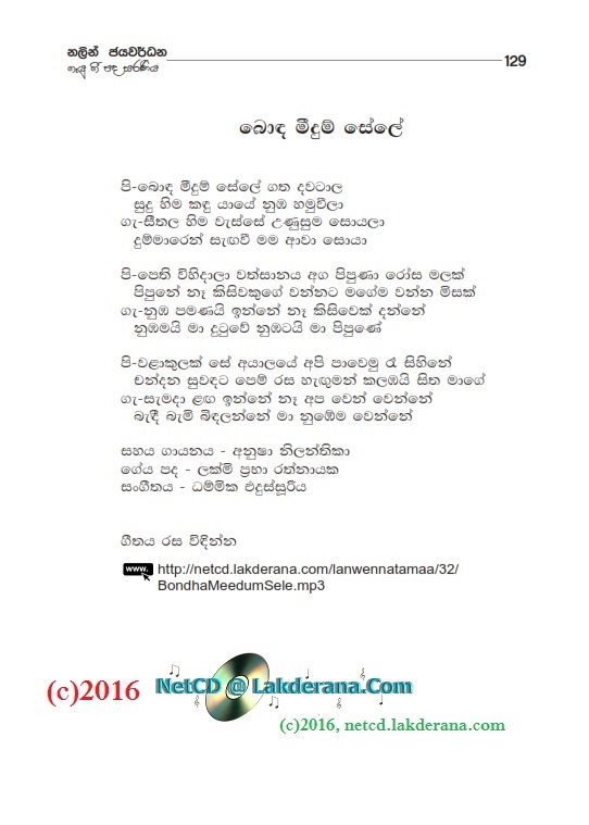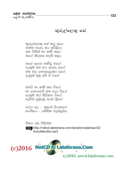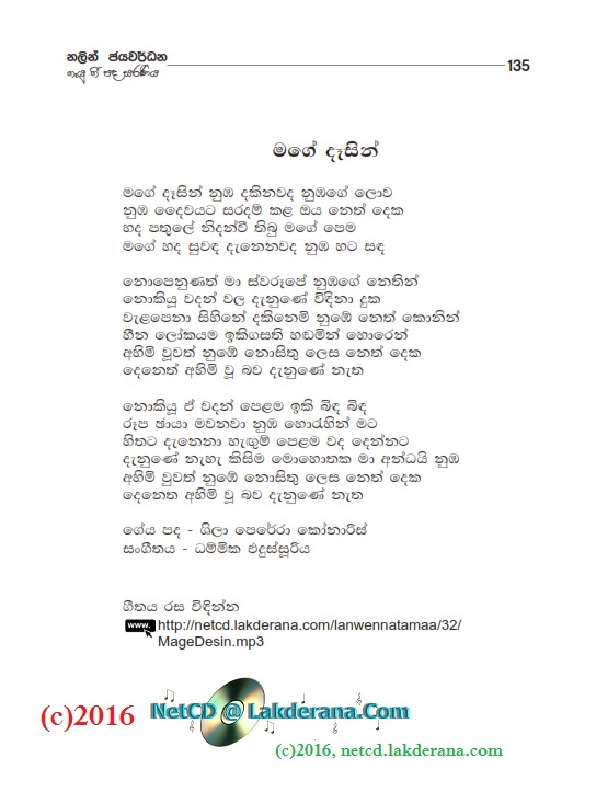 Vocals: Nalin Jayawardena Lyrics: Marie Bhagya Fernando Music: Dhammika Edussooriya