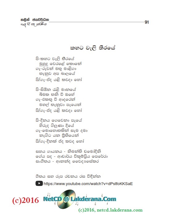 Vocals: Walter Fernando Lyrics: Vicumpriya Perera Music: Ananda Waidyasekera